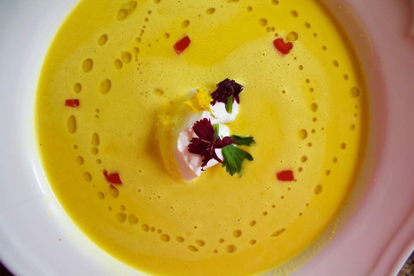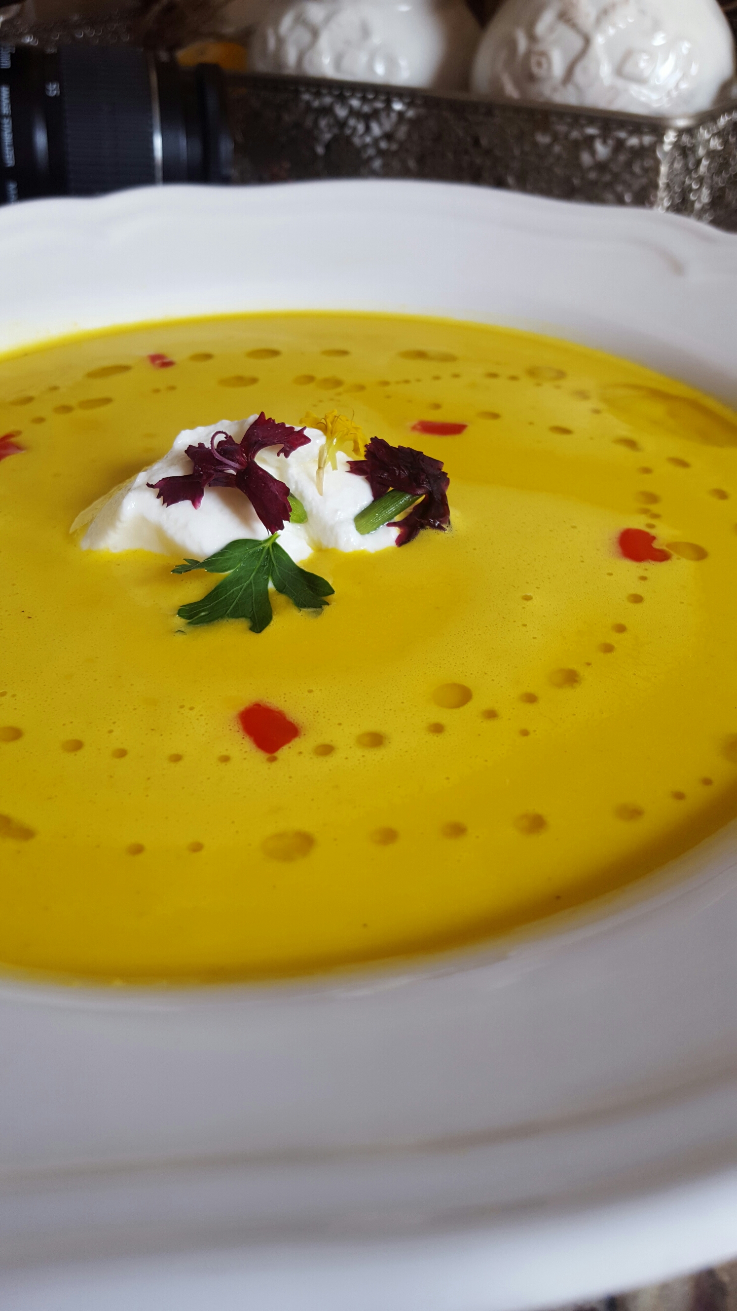 Okay, the crazy weather in Georgia has tons of people sick. One day it’s summer, the next day it’s winter with a touch of fall by 2:00 pm. Lol. Hey, I love my state, but she can be a little unpredictable. Well, if you are needing some natural remedies, get some rest, plenty of fluids and enjoy a couple bowls of this soup. Its loaded with turmeric, garlic and onions, all known to help boost your immune system. I added a few fancy garnishes, like edible flowers and red bell peppers, but you can just enjoy it all by itself, no accessories required. Enjoy and remember to Set the Table with Love.