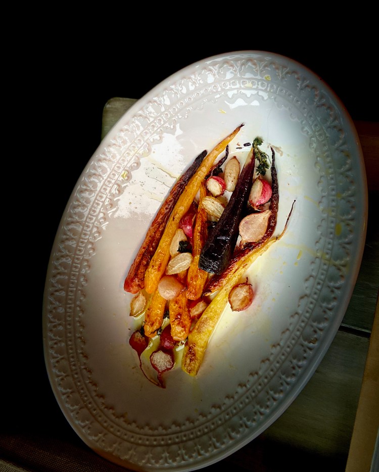 Add radishes to a large skillet and fill with water just to the tops of the radishes. Boil the radishes for five minutes, drain and pat dry. Pour out and remaining water, in the same skillet add the butter and a bit of olive oil, this will ensure that the brown butter will not burn, if this is your first time making brown butter, allow butter to cook over medium heat until the butter becomes nutty and browned. Throw in the radishes and the radish tops if desired. Cook until slightly caramelized and throw in lemon zest, juice, thyme, pepper and kosher salt. Pour over the roasted carrots and add some finishing salt, if you like. Enjoy these farm fresh recipes. Until next time and especially during this time in our lives, remember to Set the Table with Love.