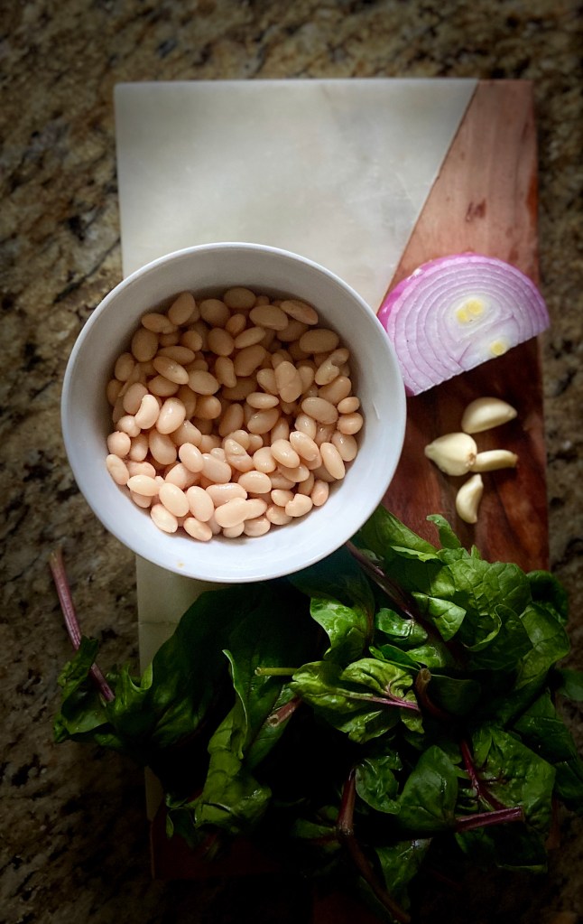 - Heat oil in a large, heavy-bottomed pot over medium heat. Add onion, garlic, and mushrooms and cook, stirring occasionally, until onion is soft. Add rainbow chard and cook , tossing occasionally, until wilted, about 2- 3 minutes. Add beans and broth and bring to a boil. Reduce heat and simmer , 15–20 minutes; season with salt and pepper. Top with finely graded dried porcini mushrooms, nutmeg and a lots of good evvo.