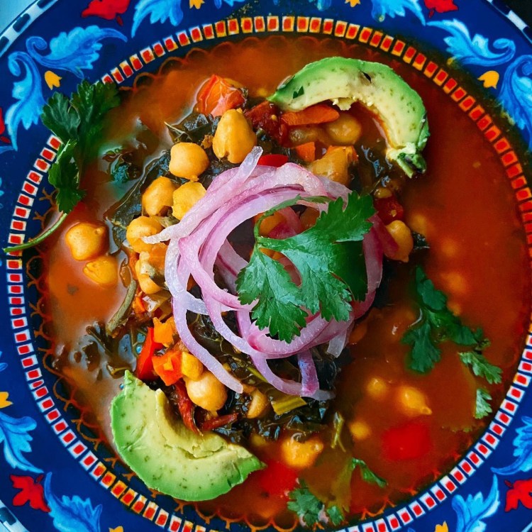 Add stew to a beautiful bowl and top with pickled red onions and avocado. I hope this recipe will warm your tummy and your soul. Enjoy and always Set the Table with Love.