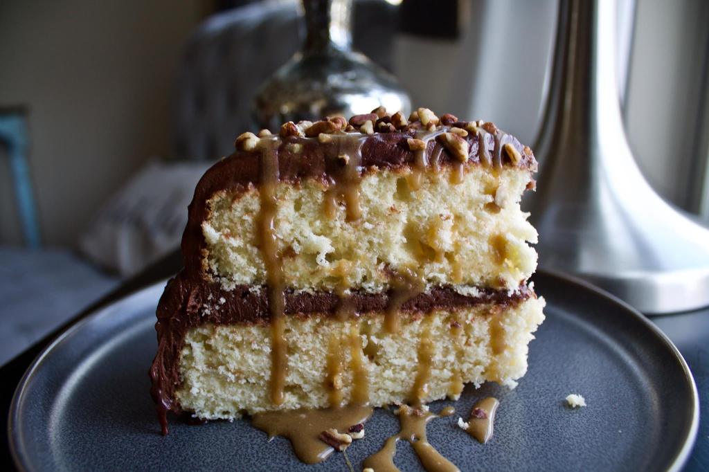 Organic Chocolate Pecan Ganache Cake with a Chocolate buttercream frosting