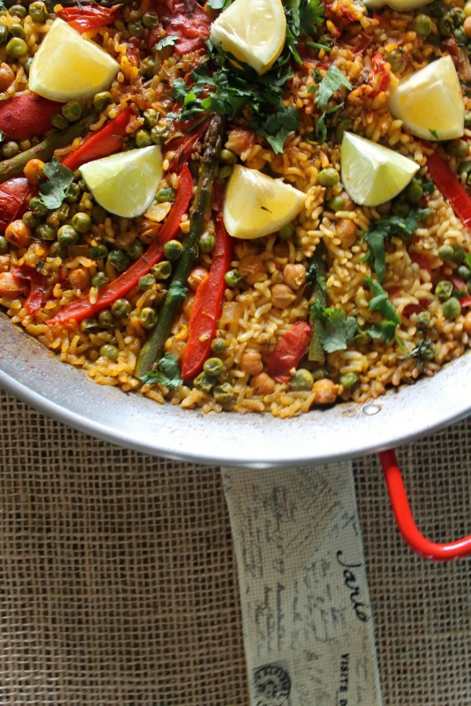 Saffron is truly one of my loves. I have even added it to ice cream and topped it with roasted pistachios, inspired by my friends from Morocco. In my opinion paella is not paella without saffron. I love making this dish out home and decided to try a vegan version and it didn’t disappoint. The great thing about this dish is you can add your favorite vegetables and switch it up each time. Today, it’s asparagus and peas and maybe next time cauliflower and broccoli florets.