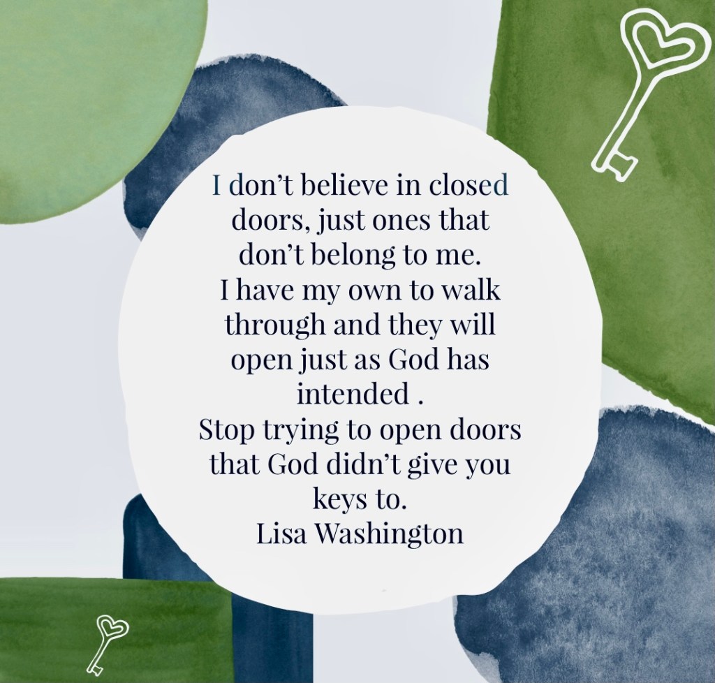 The greatest thing I have learned about this, is to focus my attention on the purpose of the journey of the “closed door “, instead of the door itself. I have learned to look for the doors that God has open for me. The places in my life that I have walked through and received what belong divinely to me. Yes, I am grateful for closed doors, because they keep things out, but they aren’t my greatest focus. Hope this opens up your mind in a new way. Stay open my friends.