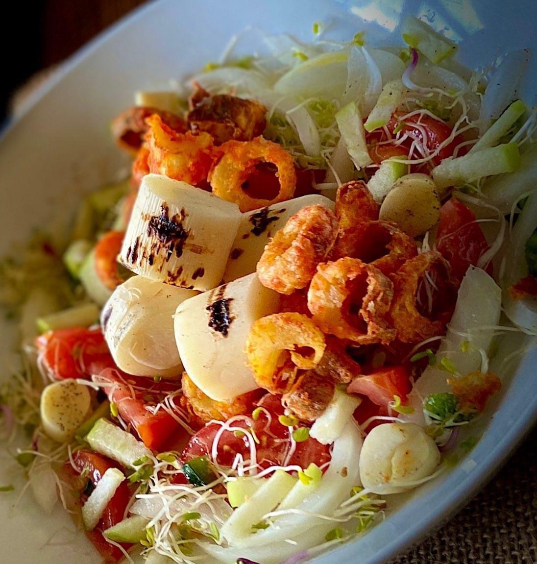 I believe what makes this ingredient so easy to use when making plant-based seafood recipes is the fact that it has a flavor and also a texture of seafood, especially when you’re making calamari because hearts of palm has these wonderful little rings when you separate them.