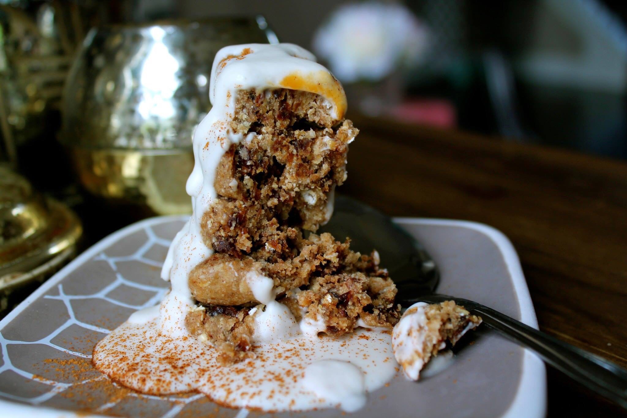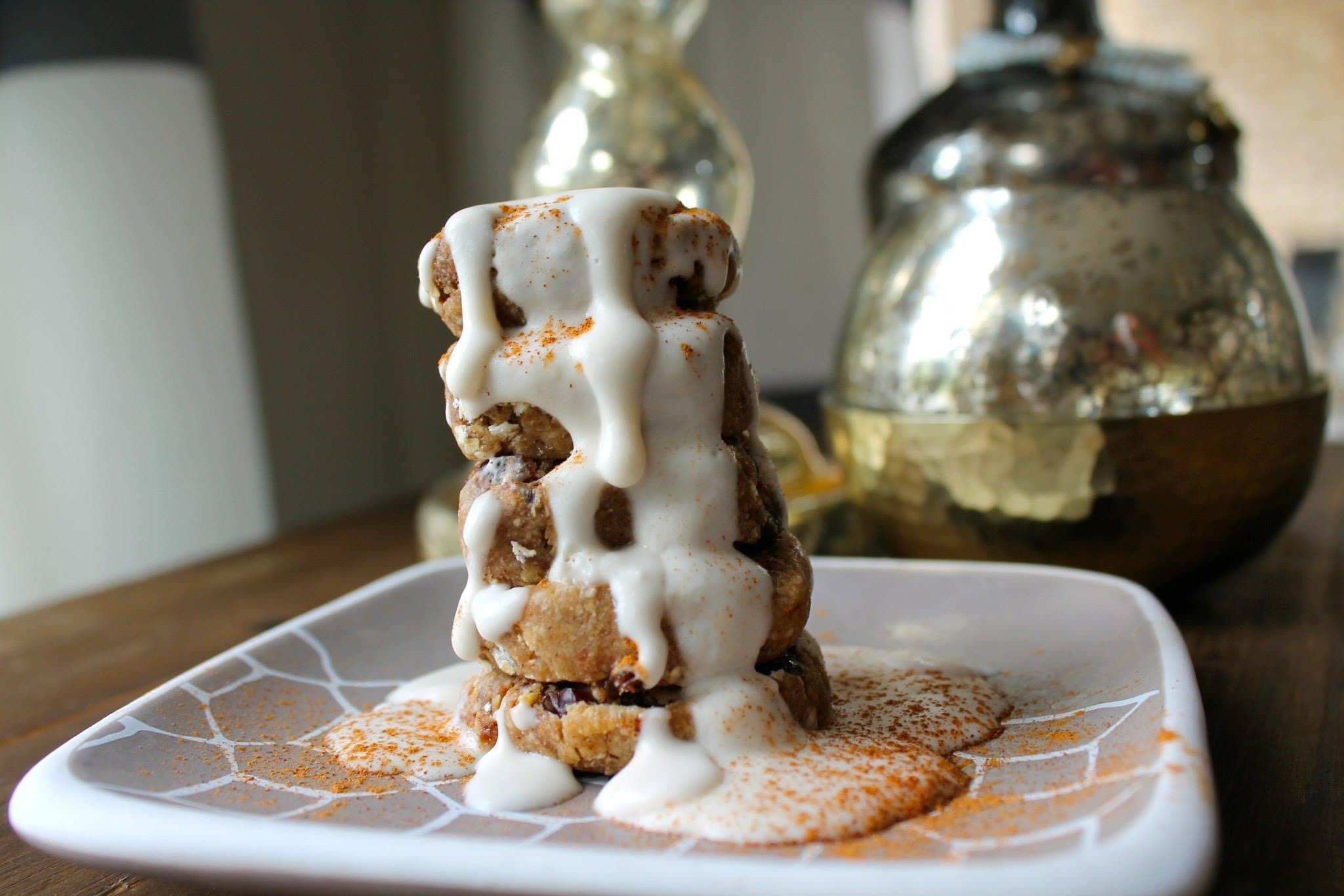 The Leaning Tower of Raw Cinnamon Oatmeal Cookies with a Maple Coconut Cream icing
