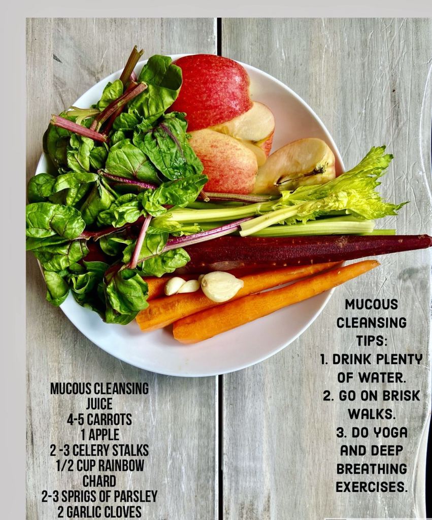Here’s a wonderful mucous cleansing juice I love using especially during allergy season, to help keep the lung passageways nice and clear.
