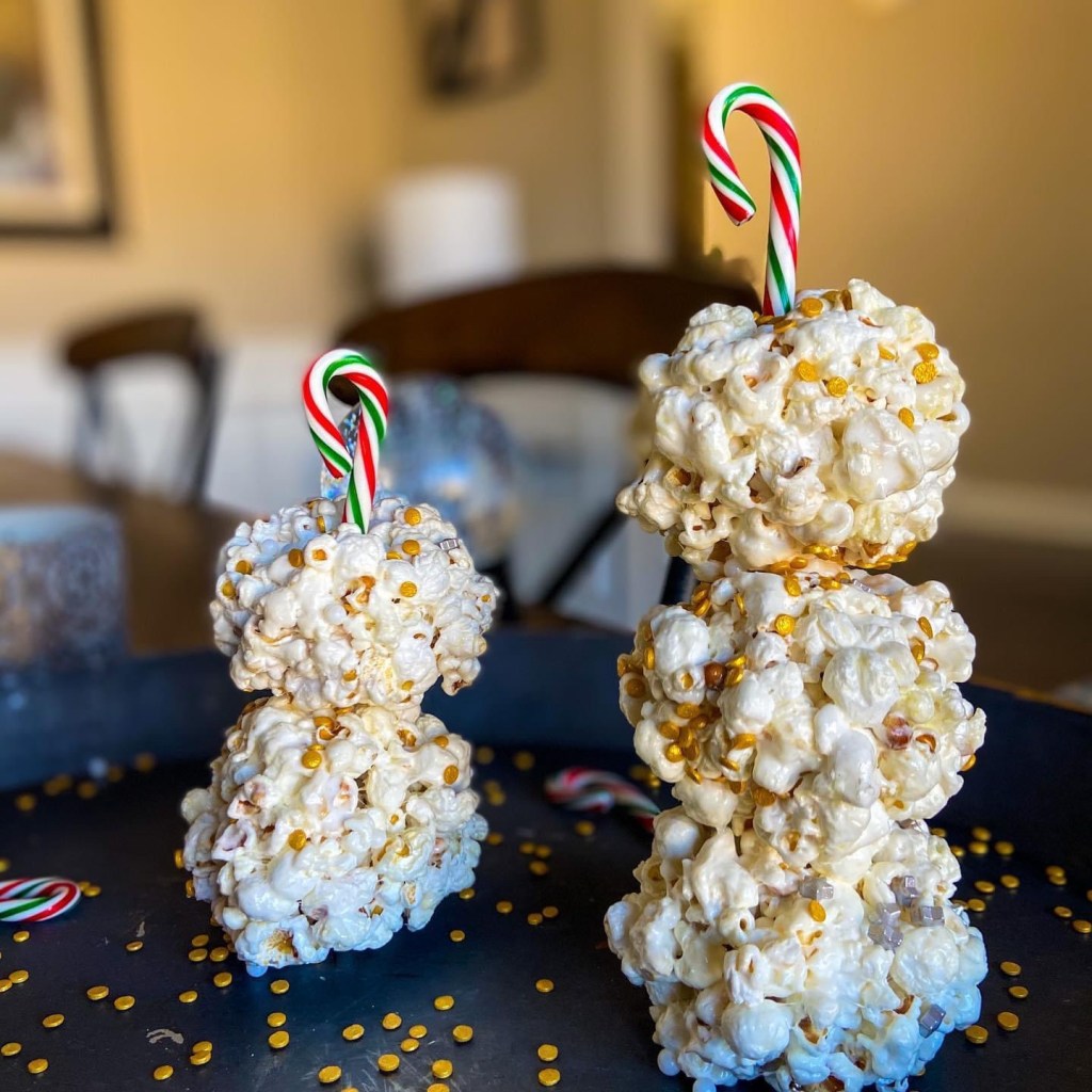 Last night I made these Christmas White Chocolate Popcorn Balls with my grandkids as we watched our favorite Christmas movies.